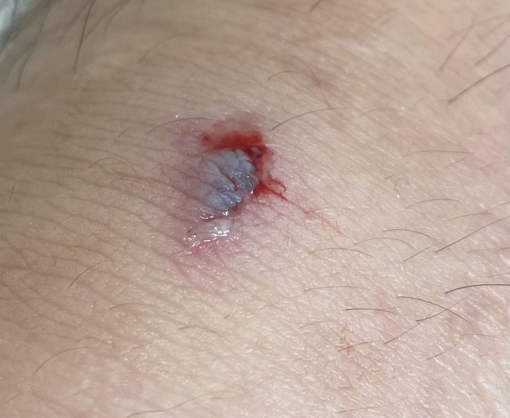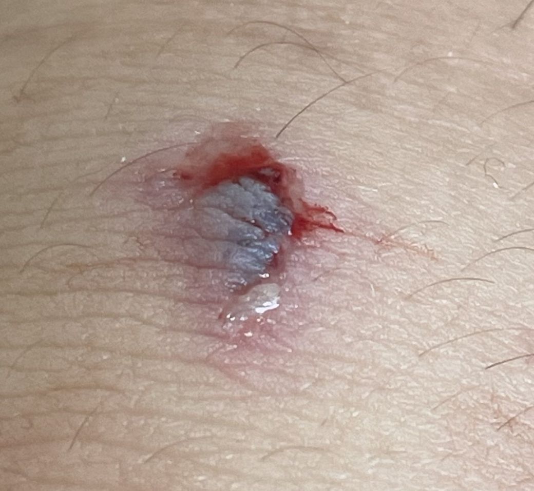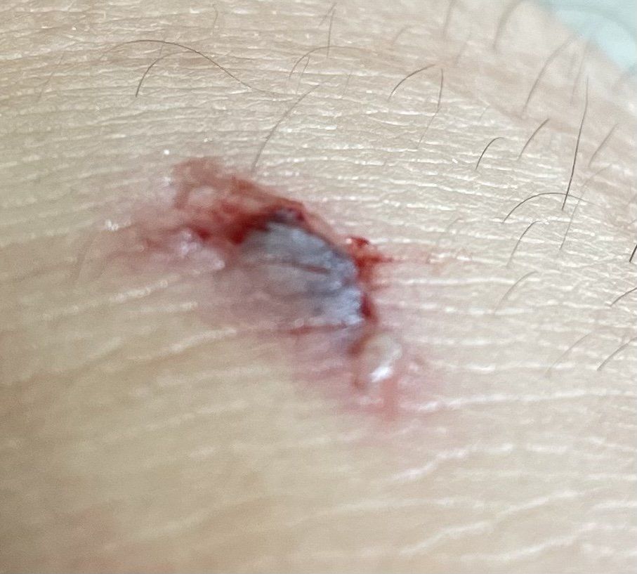 평소 상처랑은 다르게 벗겨져 떨어져나간 피부가 검게 변했습니다.