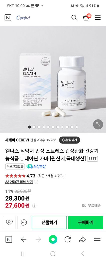 엘나스 라는약인데요 테아닌약이에요