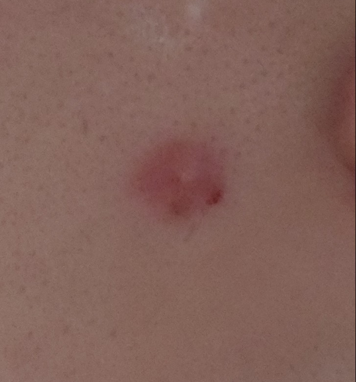 피지 혹은 고름이 조금 나왔다는 말씀으로 보아 여드름을 손으로 짜낸 것 같습니다.