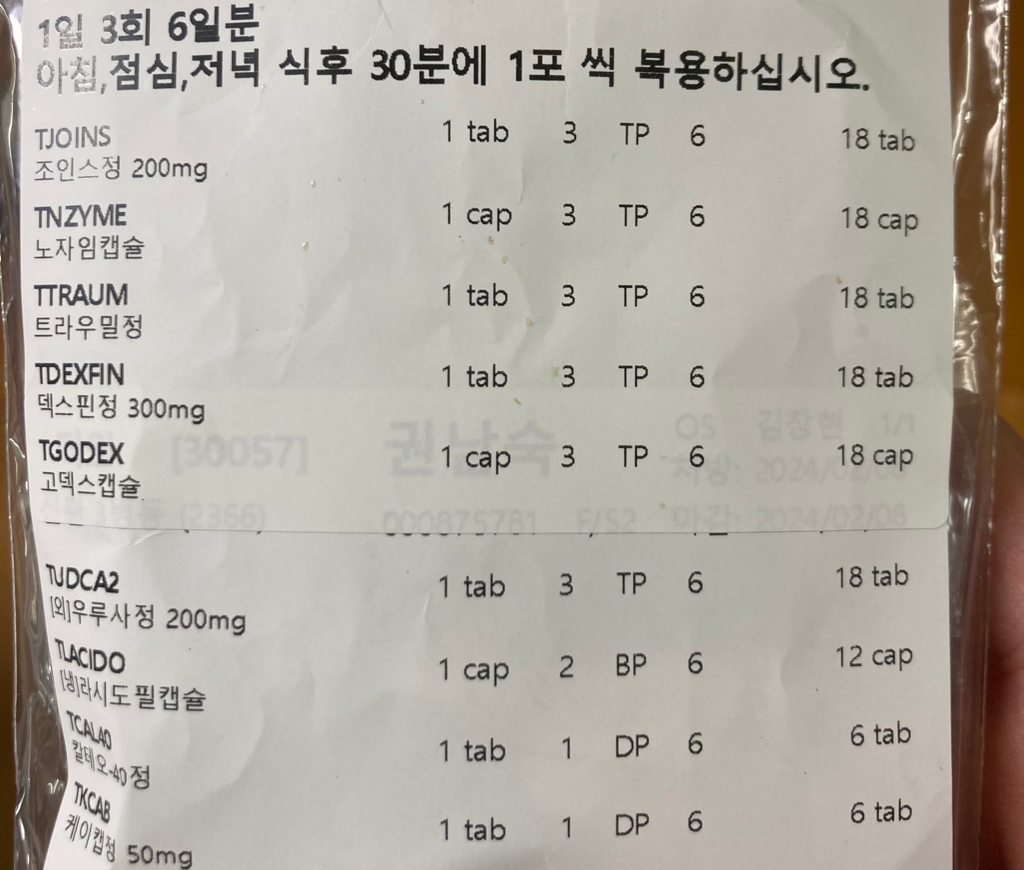 정형외과 약과 아래 감기약 모두 같이 드셔도 문제 없는 성분들입니다.
