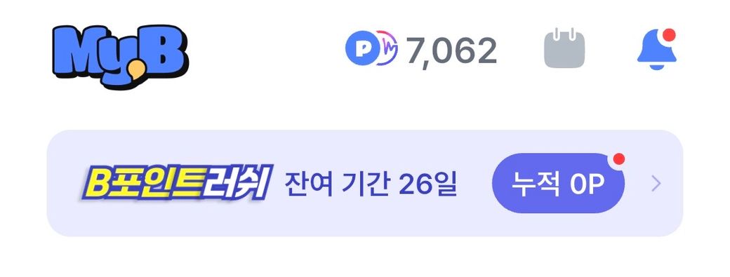 MyB를 이용하는 입장에서 판단하자면 저 7,062 포인트는 포인트가 아니라 코인 형식의 가상 화폐의 가치가 아닐까 생각합니다.