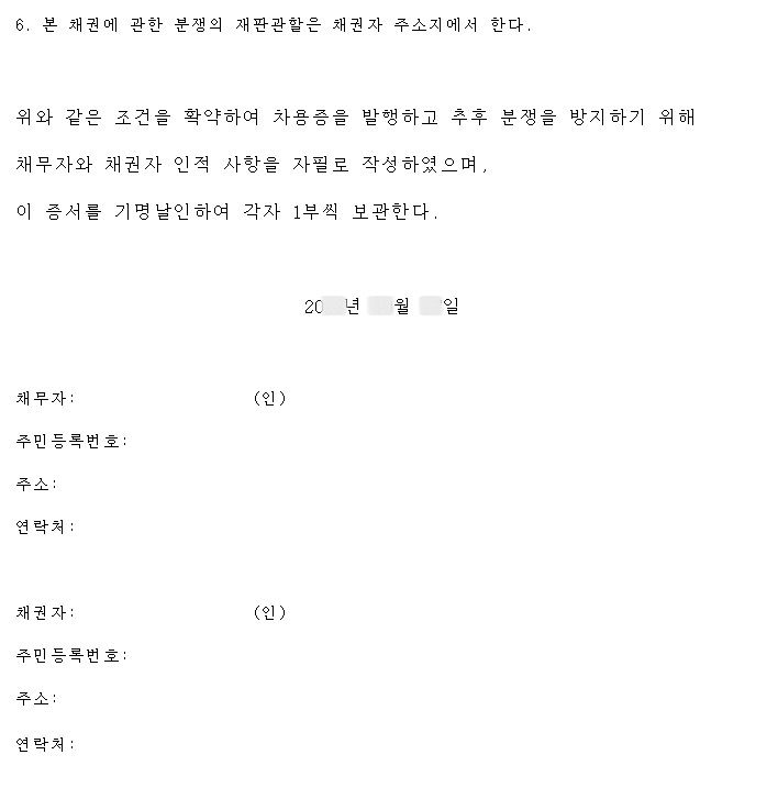 일단 차용증을 이렇게 작성할까 하는데 문제가 될지 고견 부탁드립니다!