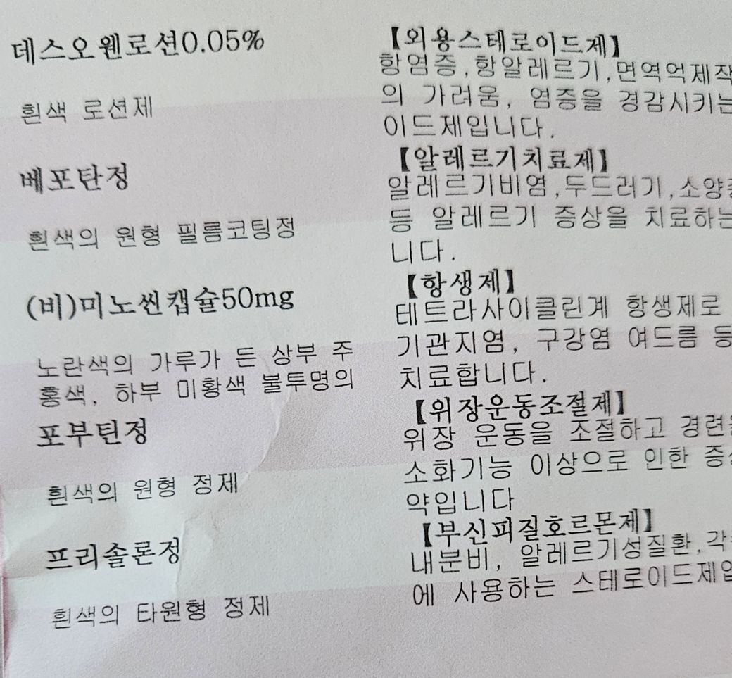 지루성 피부염으로 다음과 같이 약을 처방받았습니다.