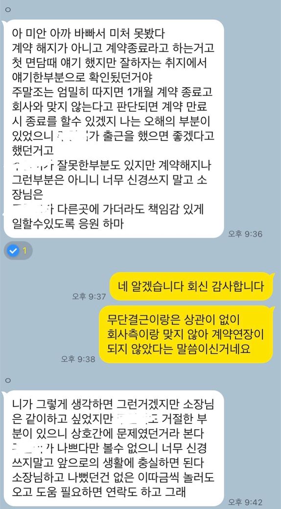 대면으로 계약 연장 불가 통보를 받았습니다.
