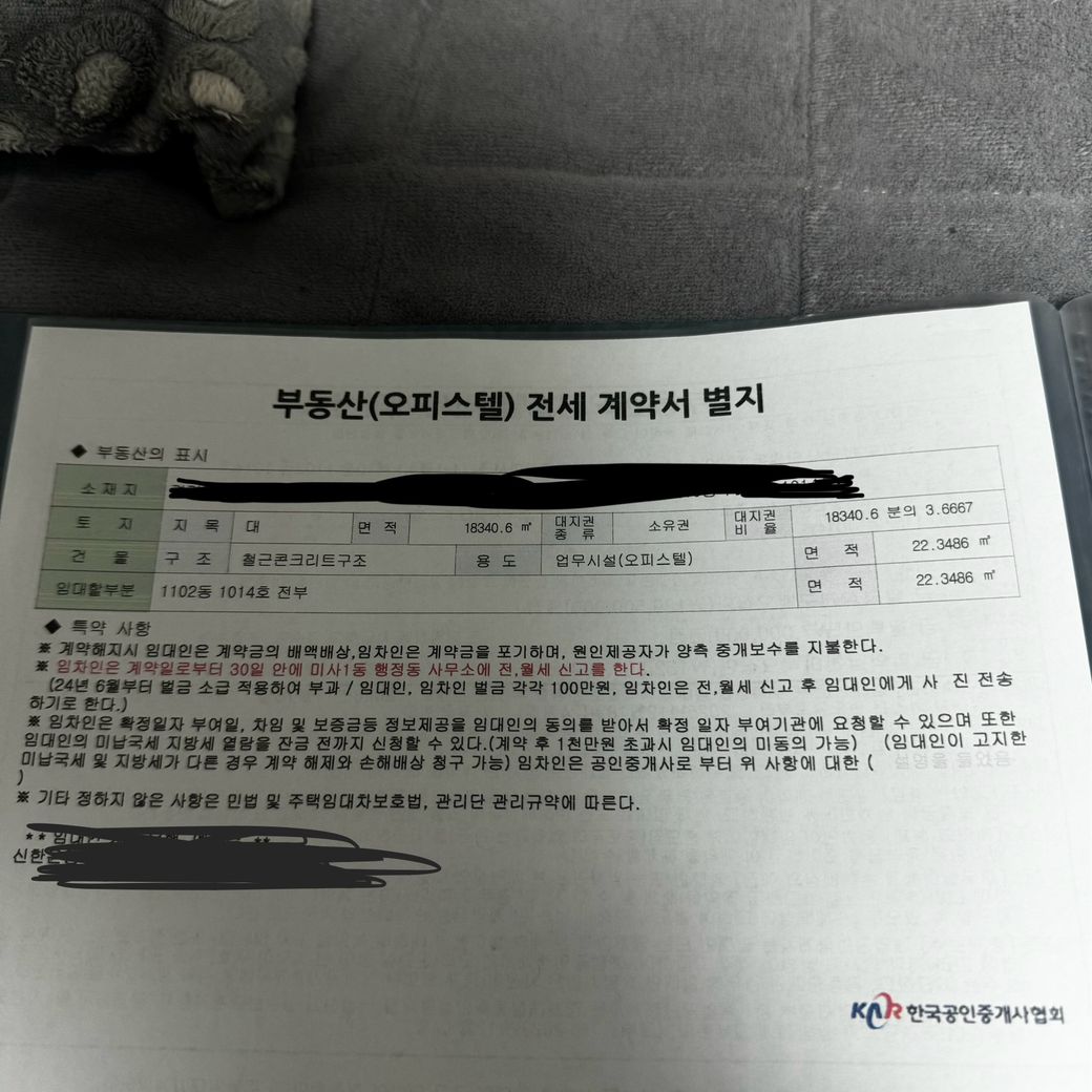 1.전세 계약서 "용도상 업무시설(오피스텔)로 적혀있습니다.