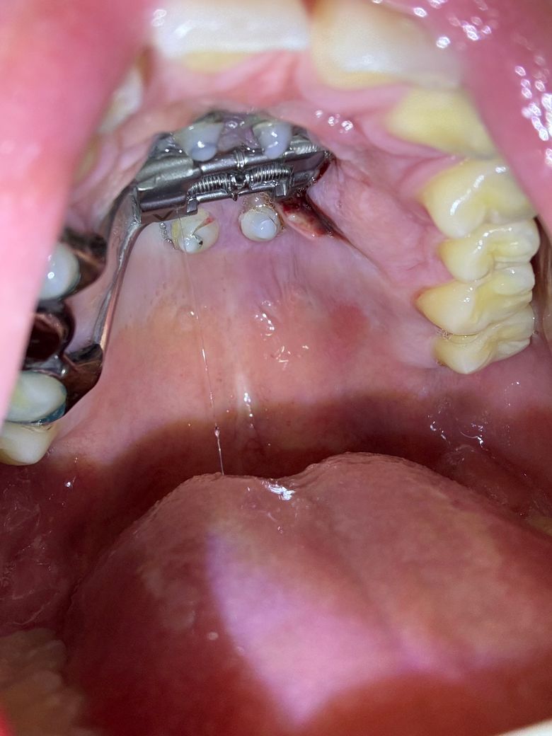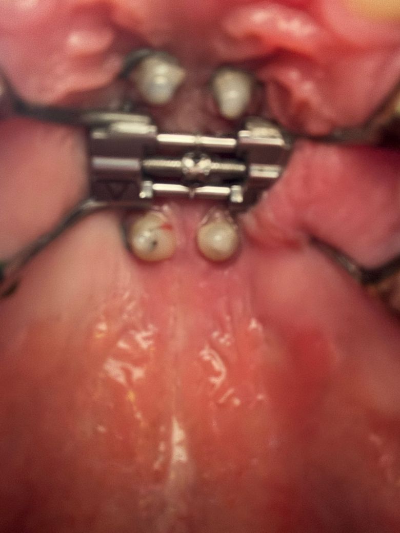 악궁 장치 다리가 잇몸을 압박해서 염증이 났습니다.