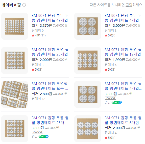 사진에 보이는 제품은 3M 원형필름 테이프 입니다. 종류와 가격대도 다양해서 필요한 사이즈에 맞게 적당히 구매하시면 됩니다..