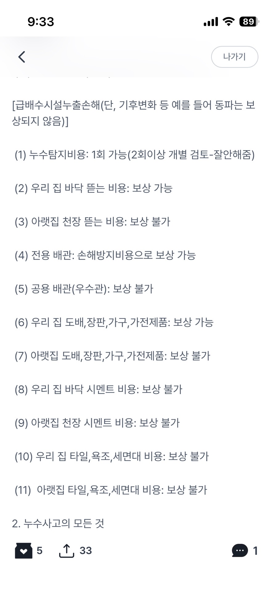 누수공사+피해복구로보면 자부담금50만원 어느쪽으로 보는지 궁금합니다