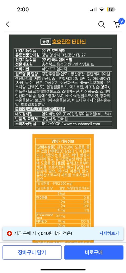 터마신, 콘드로이친, msm 같이복용해도 되나요