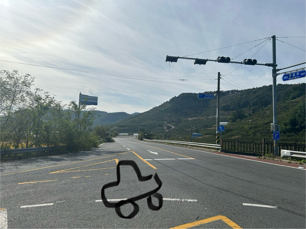 상대는 왼쪽에서 오른 쪽으로 직진 방향 (황색 점멸 신호등)
