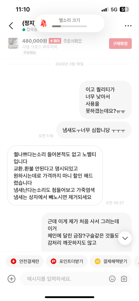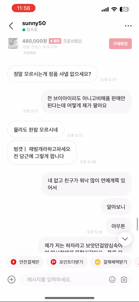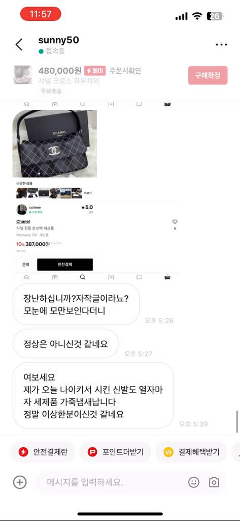 제가 24년 3월 14일쯤에 번개장터에서 샤넬파우치를 노벨티? (해외 vip 증정용이라고 판매자가 했습니다)