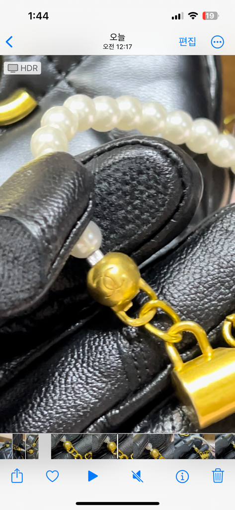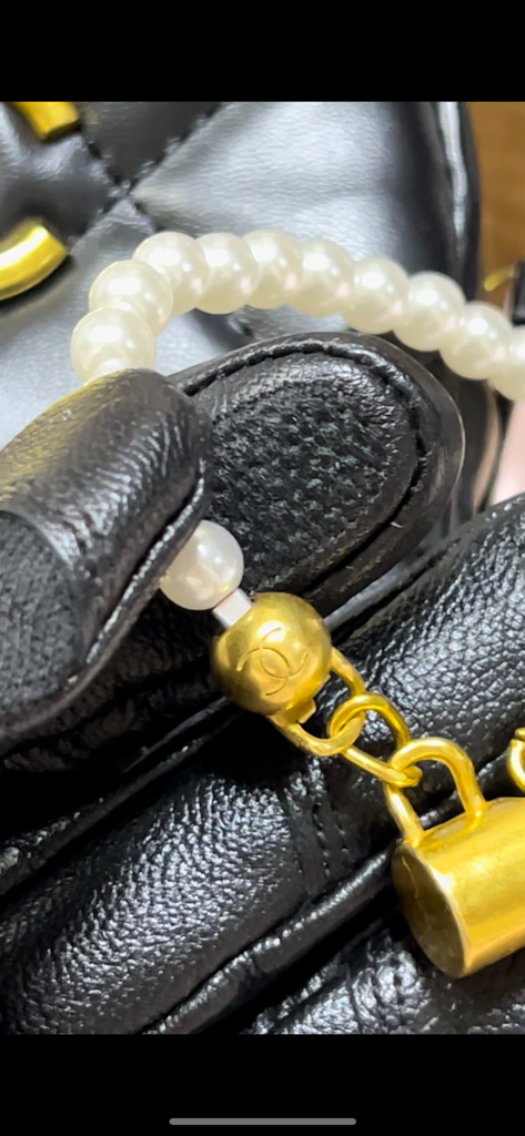 그치만 제품을 꺼내서 하남식 스윽 보는데 우선 이중체인 디자인 제품이 색이 달라 당황하였고 가방 스트랩 조절기? 금색장식? 이라 해야할까요 누가봐도 마감처리도 안되어있고 진주사이에 쇠?? 고정용도로 고정되는게 떡하니 바깥으로 보였습니다.. 가방체인마다 스크래치들도 있었지만 스크래치로 판매자께 문의는 안햇고