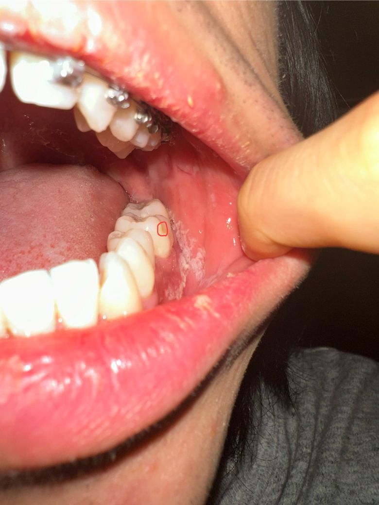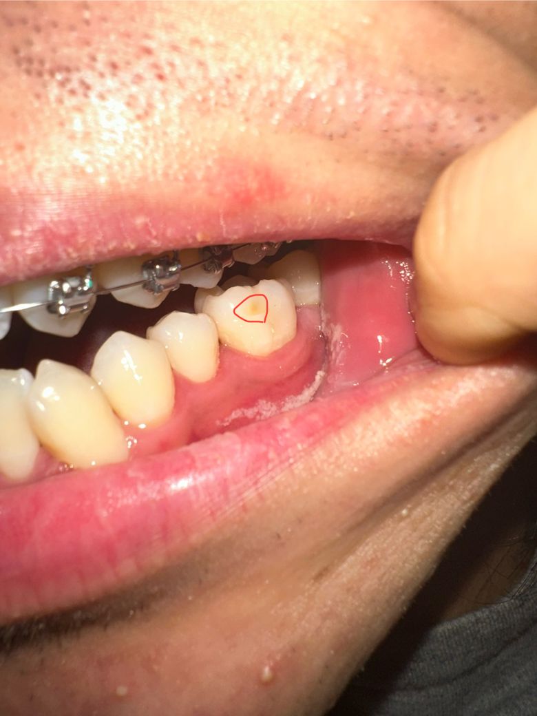 어금니 충치치료 후 레진 떨어진건지 봐주세요