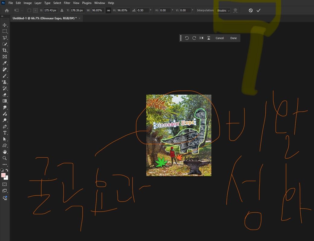 (이미지 첨부합니다. 1번은 포토샵 실행한 이미지, 2번은 문제 풀이 이미지)