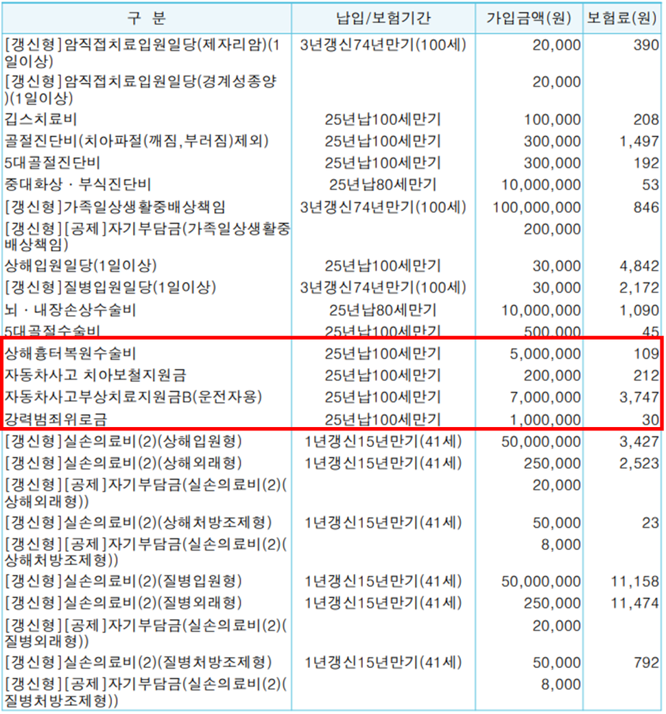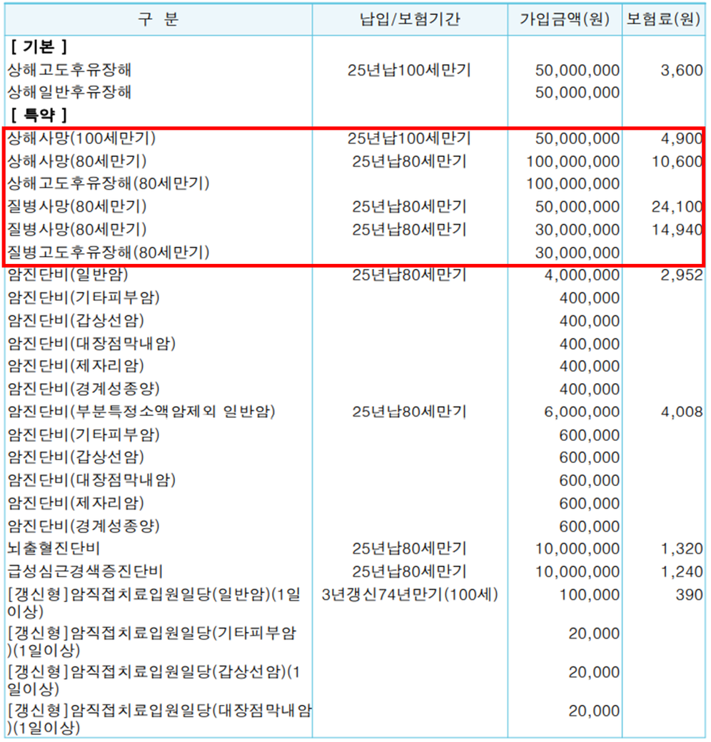 어떤 특약이 있는지 한눈에 볼 수 있거든요.