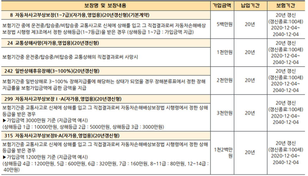 상해사망, 고도 후유장해 같은 보장이 그런 보장이고