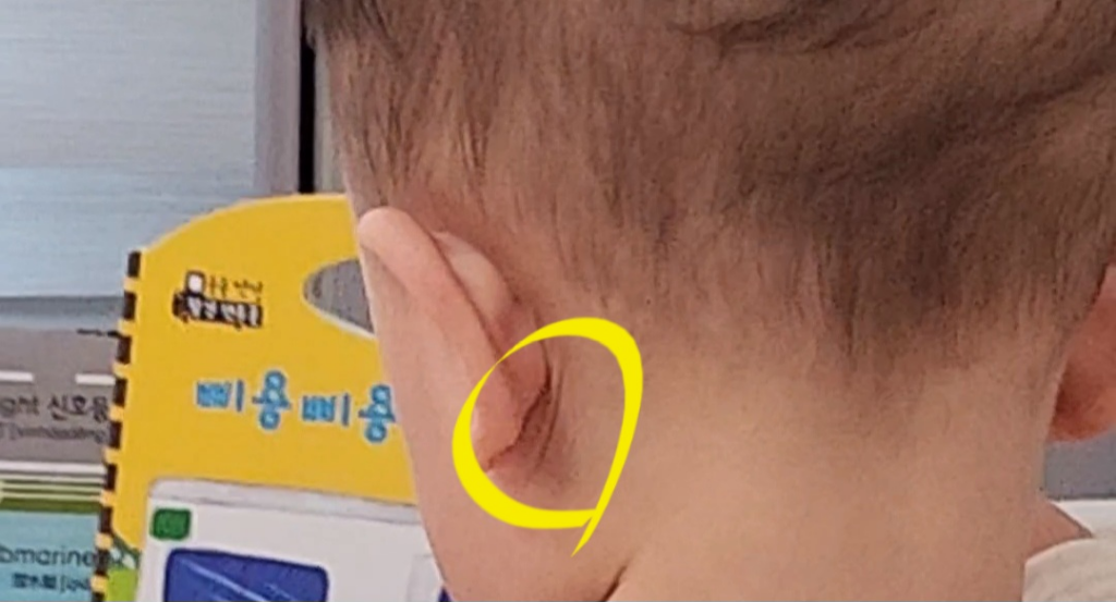 며칠전에 아기 귀볼뒤를 보니 사진처럼 양쪽에 주름이 있던데