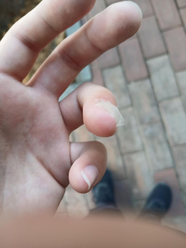 아들이 농구를 하다가 공에 부딪혀 손톱 앞 부분이 들렸습니다.