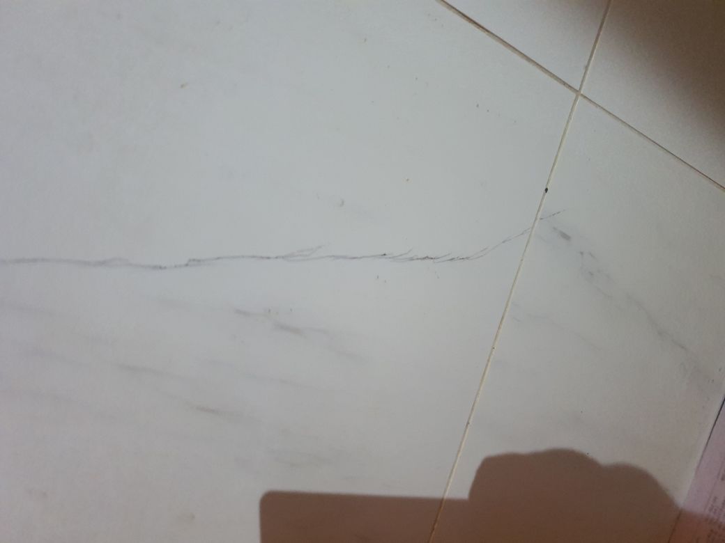 볼펜처럼 그어진 부분이 금이 갔다고 주장하는 부분입니다. 만져보지 않고 사진만 찍고 왔습니다.