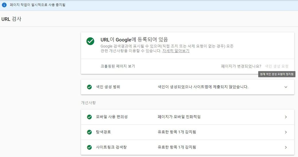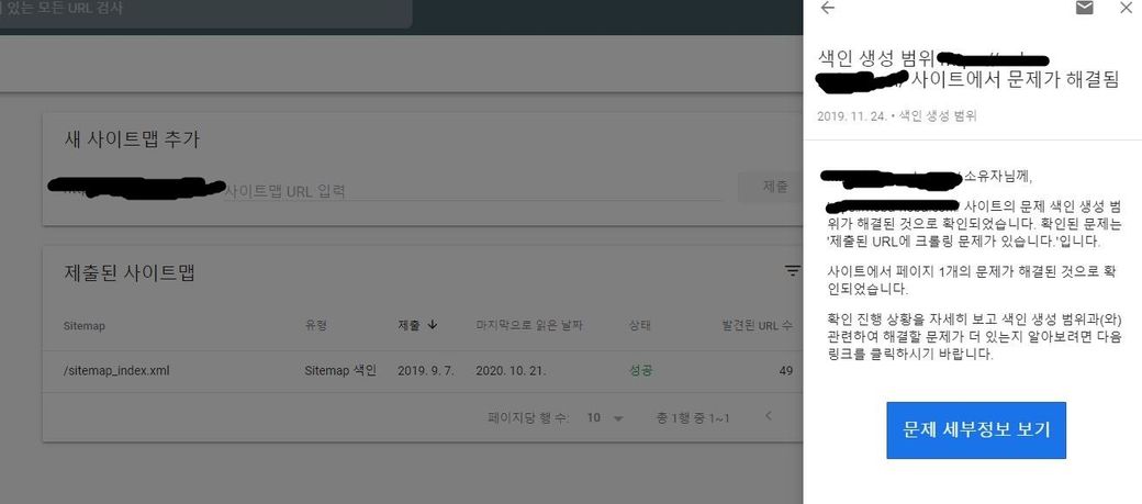 참고로 사용하지 않은지 오래된 사이트는 서치 콘솔에서 색인이나 사이트맵 크롤링이 가끔 정상 작동하지 않는 경우가 있긴합니다.