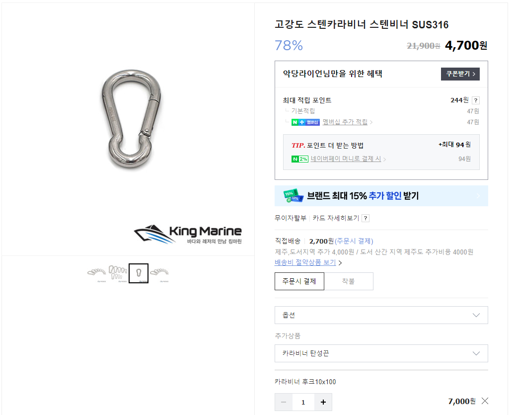 복스알과 카라비너는 일할때 사용하는 제품입니