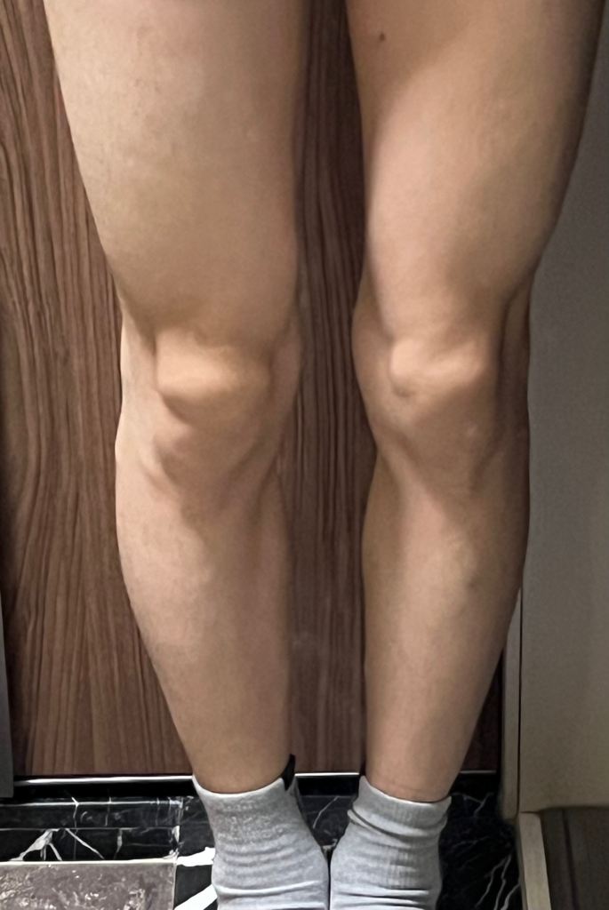 사진을 찍어봐야겠지만 육안으로 봐서도 내반슬(O자 다리)이 있어보이지는 않습니다.