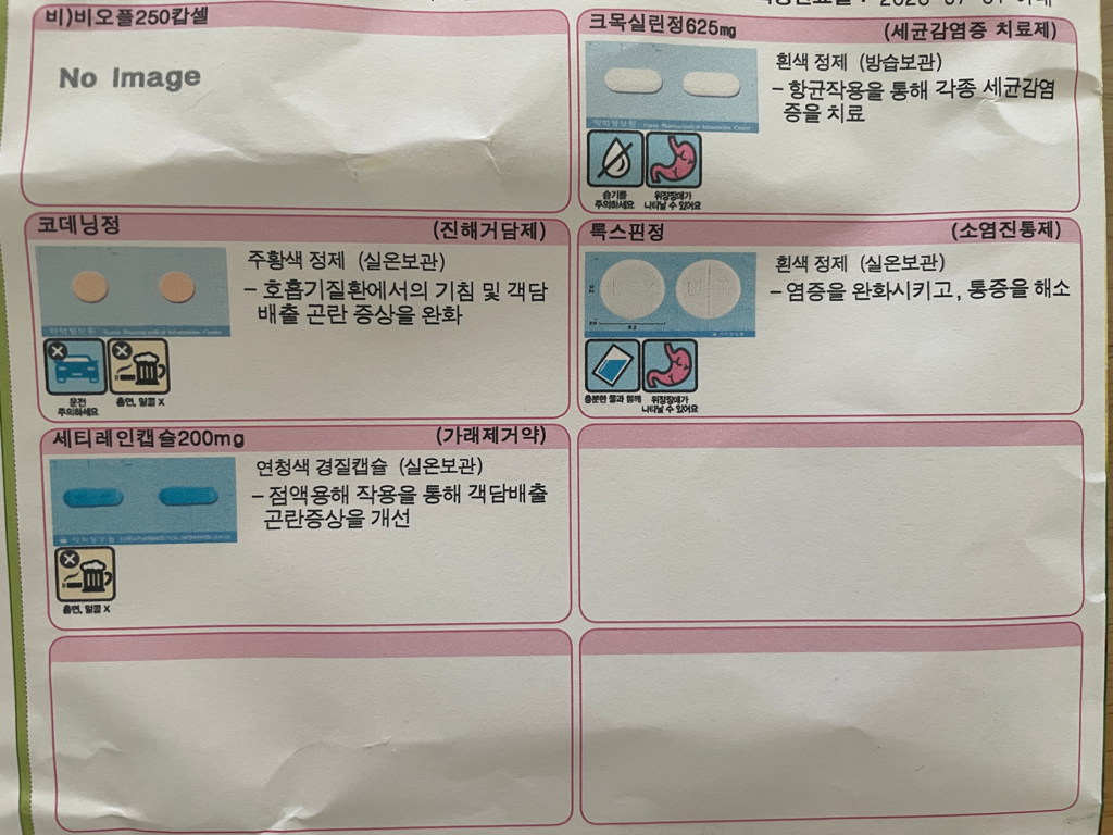 항생제 처방을 받으셨기에 되도록 과음은 피해주시길 바랍니다.