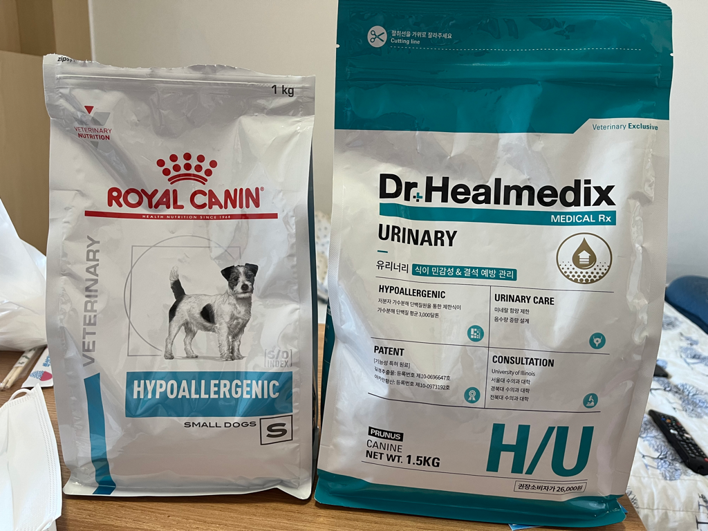 의사가 칼슘옥살이라고 이 사료 추천햇는데 이거 먹는거 맞나요? 옆에껀 피부병잇을때 급여한거고 닥터힐 추천하셧어요 수술전엔 로얄케닌 유리너리 몇년먹엿엇는데 이게 너무 짜서 지금 간수치가 마니 높아서요ㅠ