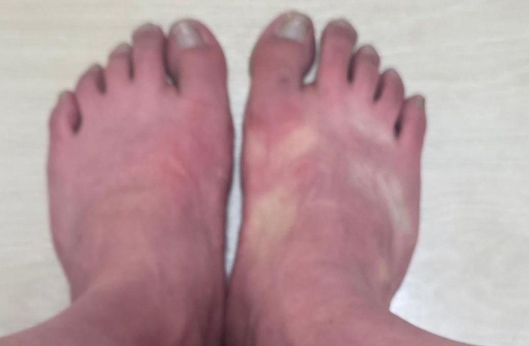 수면양말끼고 생활하는데 발은 더운데 뭔가 부은것처럼 저렇게 엄청 빨갛고 오른쪽처럼 손으로 지긋이 누르면 한참이따가 다시 원래색으로 돌아옵니다