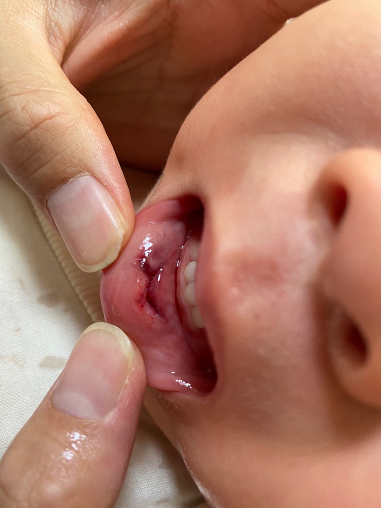 18개월 된 아기가 유모차가 넘어지는 바람에 입안이 찢어진거 같아요