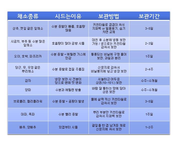 냉장실에 보관했는데도 금방 물러지거나 시들어버려요