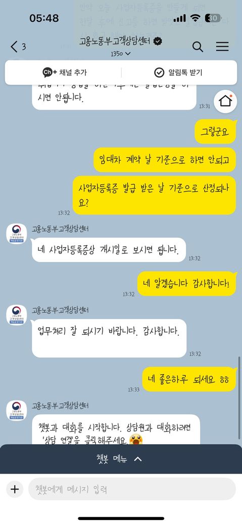사진은 고용센터에 문의했던 내용 답변이랑 고용24어플에서 사업장등록 신고하는 항목 캡쳐입니다