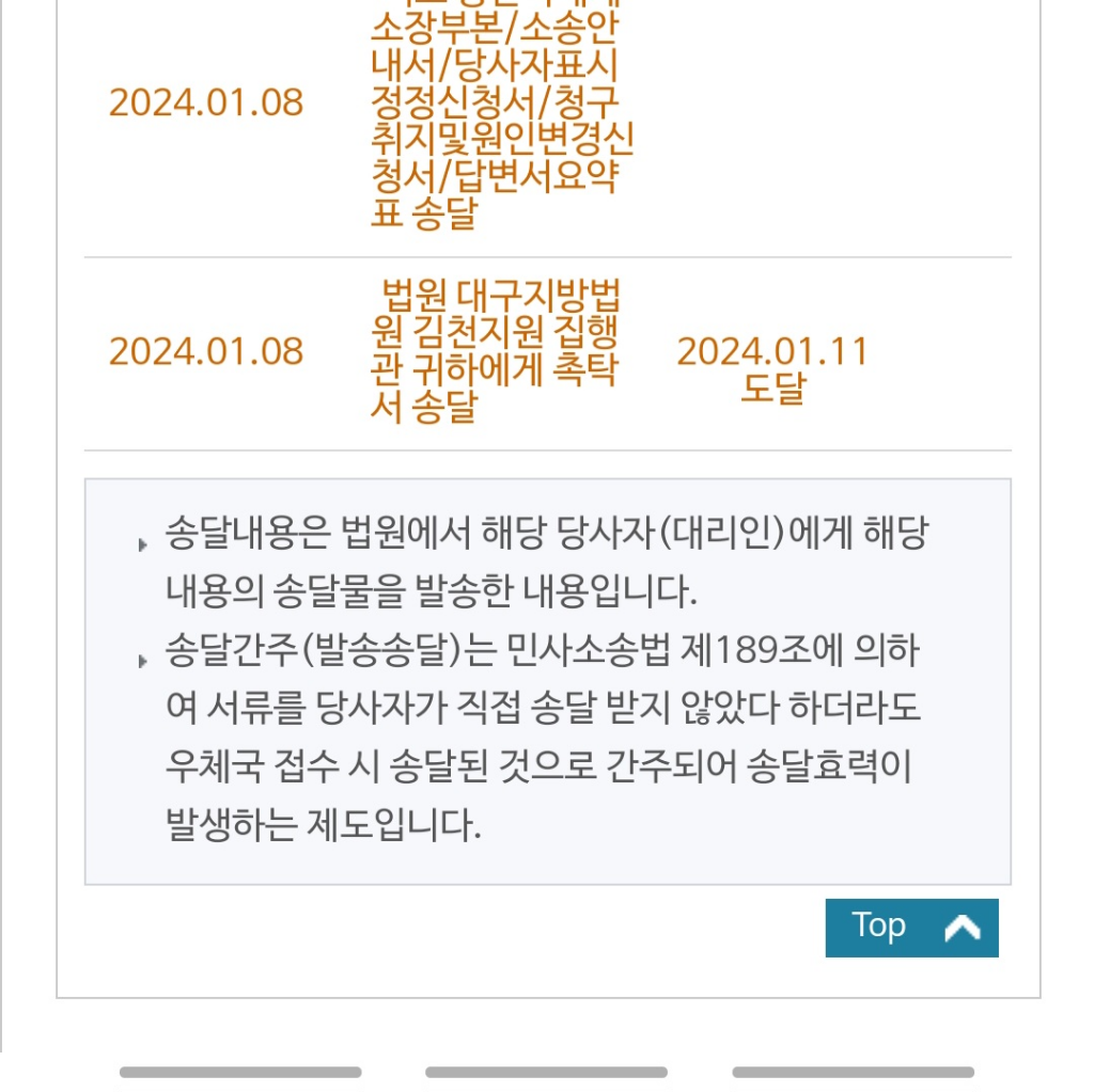 집행관에게 2024. 1. 11.자로 도달이 되었습니다.
