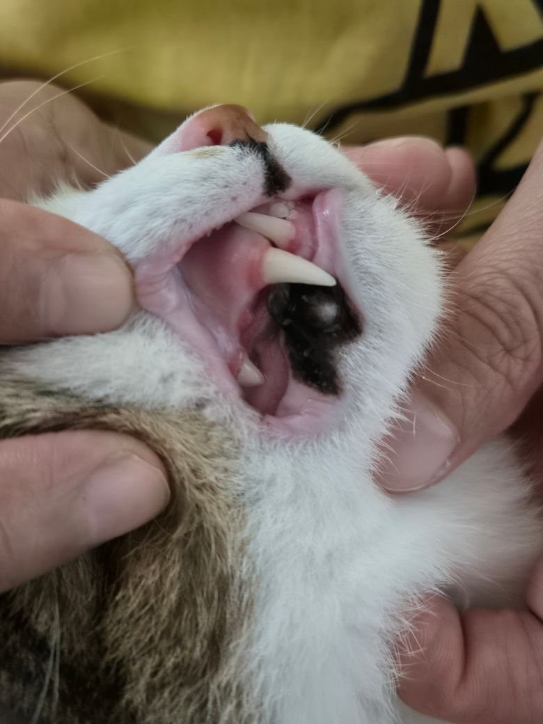 오늘 양치 시켰는데 이러하네요 구내염은 아니면 좋겠는데 집에 구내염 약 먹이는 냥이가 있거든요 전염 되었을수도 있는거죠? 걱정 입니다..