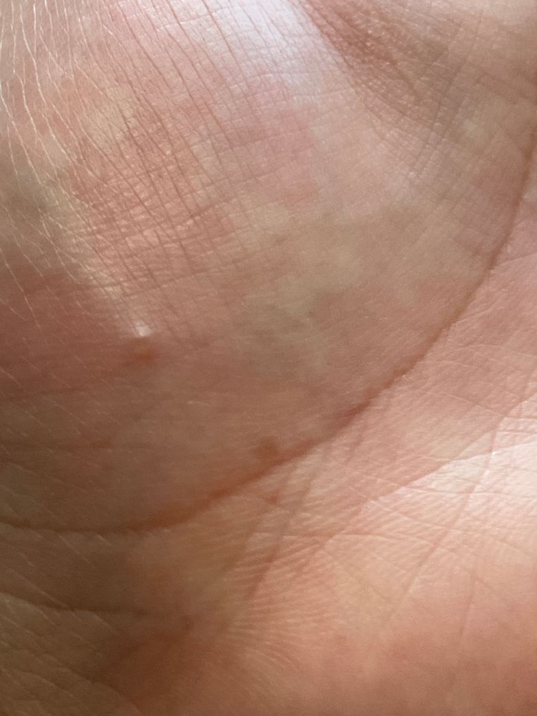 손바닥에 물집같은 게 잡히는 데 계속 간지럽습니다 한 이런게 손가락 손바닥 포함 3개 있는 데 간지러고 불편한데 뭘까요? 궁금합니다!