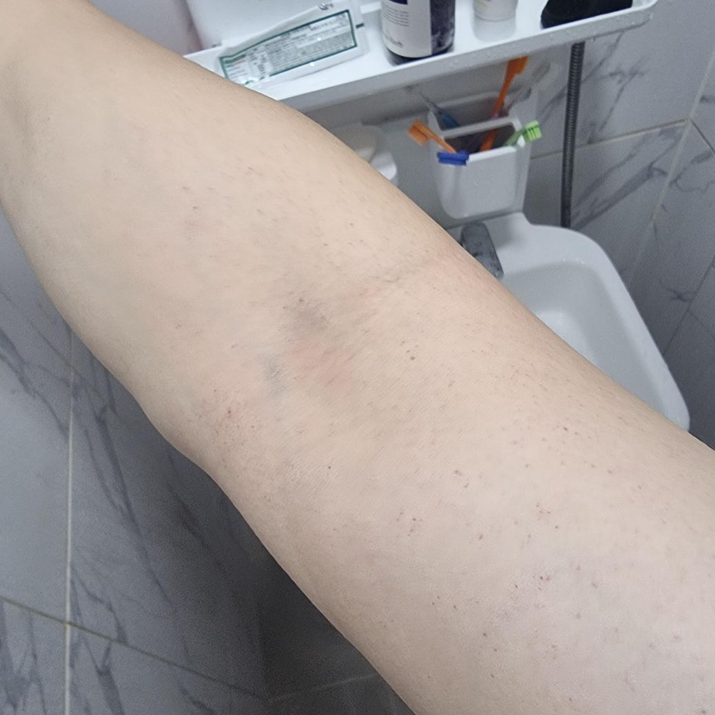 팔의 붉은 점이 눌러도 색이 사라지지 않으면 점상출혈 가능성이 높습니다.