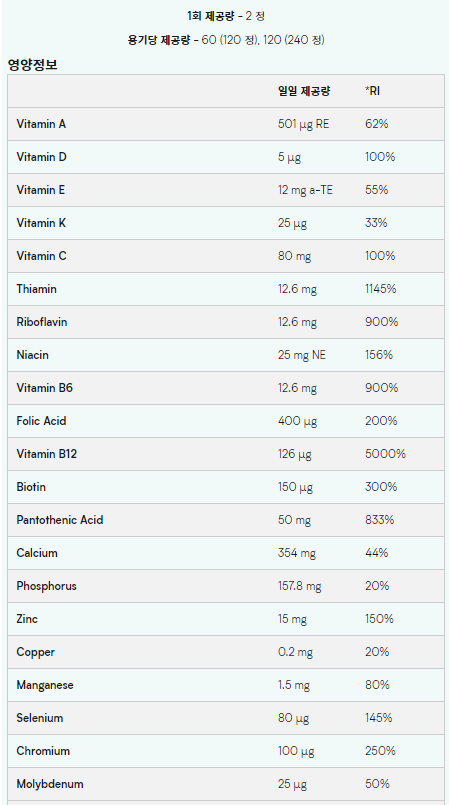 멀티비타민의경우 총2회 권장량은 다 채워서 복용합니다.
