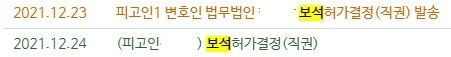 나의사건검색에 지인검색해 봤는데 보석허가결정(직권) 이라고 나와있는거 보석이 받아들여진건가요?