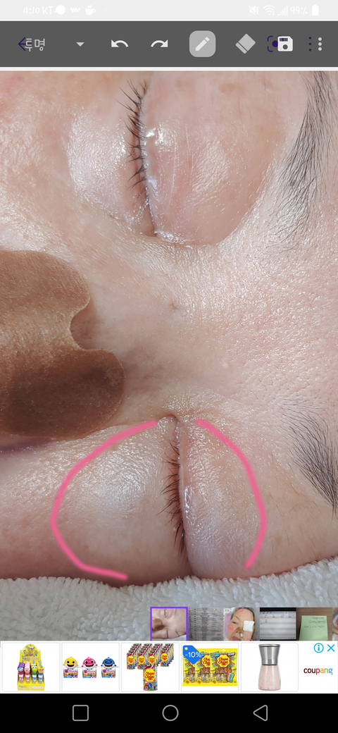 어머니의 왼쪽 눈만 계속 부어요;;