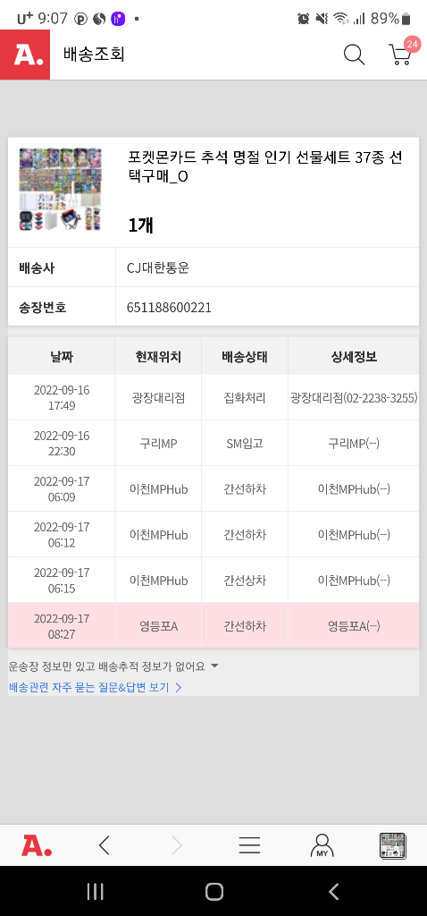 저의 지역에는 CJ 택배 토요일 배송됩니다.