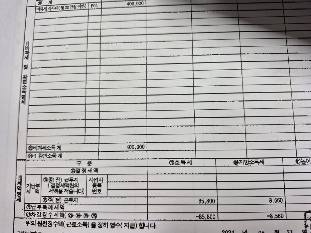 2024.1.1.~2024.4.30. A기관에서 근무, 퇴직정산 완료 (기납부되었던세액 모두 환급받음)