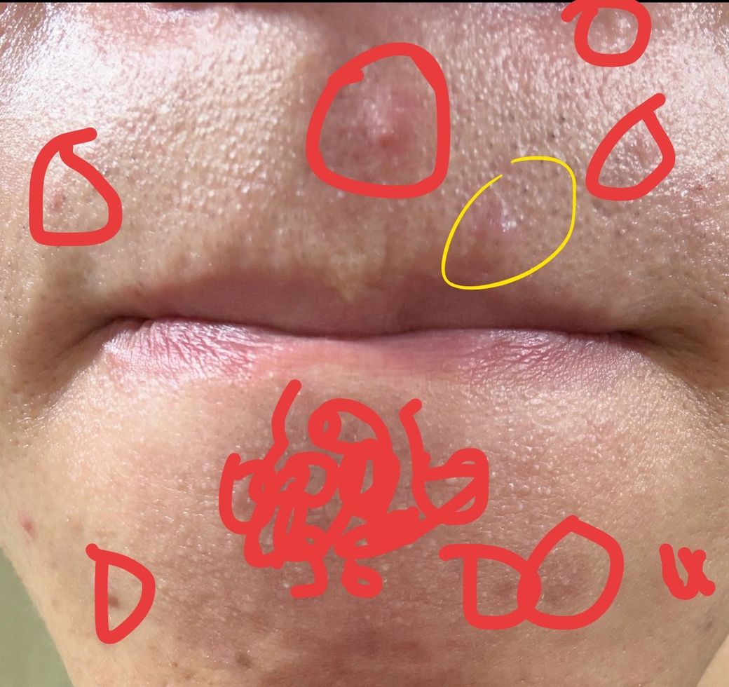 입술에 난 수포인지 여드름인지 봐주세요 계속 뭔가 흔적처럼 있다가 저렇게 모낭염인지 수포인지 여드름 처럼 부웠는데 친구들 말로는 여드름 같다는데 ㅠㅠ 잘 모르겠어서 여쭤봐요