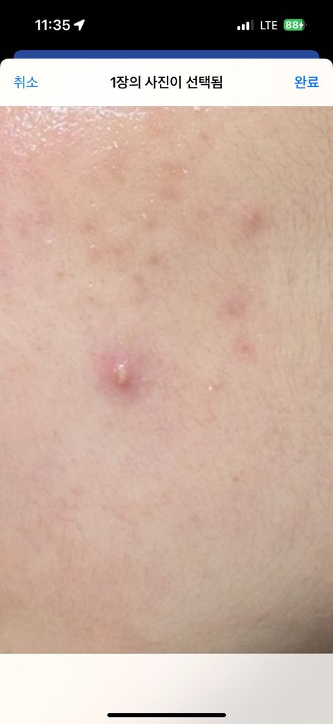 현재 보이는 병변은 크기가 비교적 커 보이는데, 눌렀을 때 통증이 강하거나 단단한 결절처럼 만져지는지도 확인이 필요합니다.