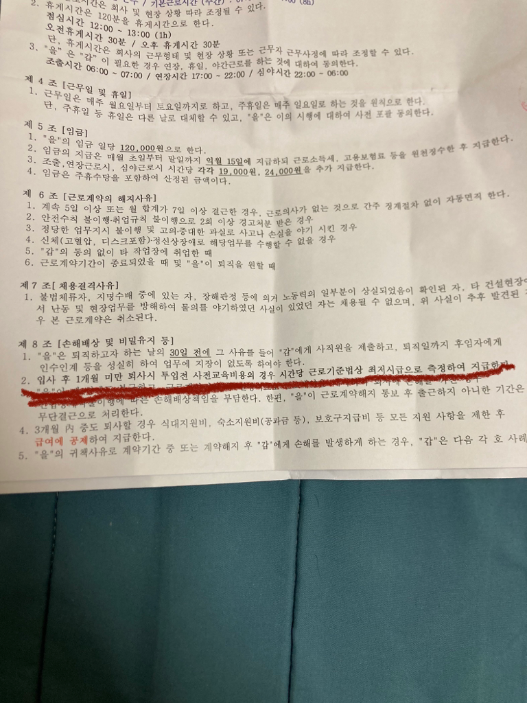 일단은 계약서의 내용상 그리고 질문주신 내용상으로는 1개월 미만 근무시 최저임금으로 계산하여 지급한다고 하는 것이므로 일응 질문내용대로 이해하실 수 있겠습니다.