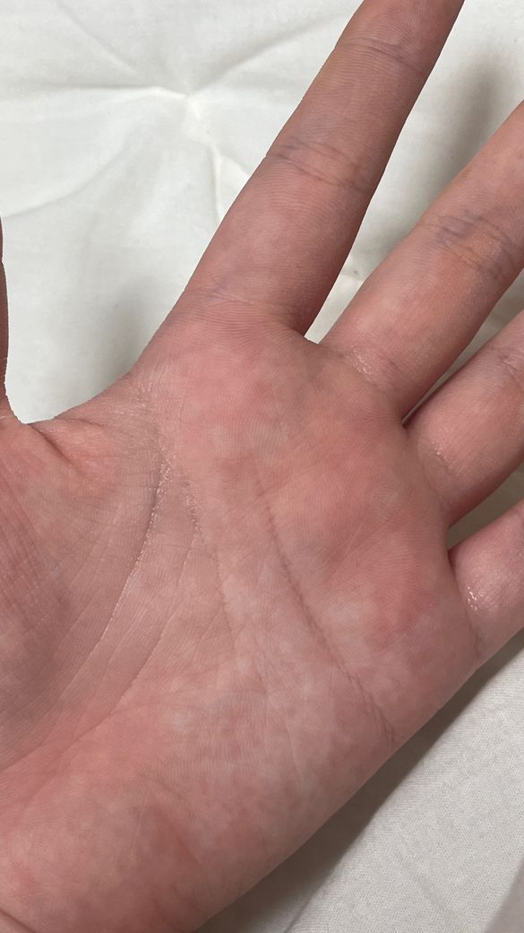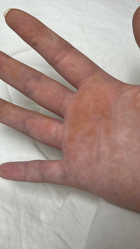 귤 이런거 안 먹었고 갑자기 폰 보다가 손 확인했는데 이렇게 노랗게 변했어요 왼쪽손만 이렇고 손바닥이랑 손톱 주변에만 이렇게 변했고 손등은 멀쩡해요 노란색과 접촉할 일은 크게 없는데 손 씻어도 안 지워지고 비누에 색도 안 묻어나요 손 말고 다른데는 다 괜찮은데 너무 걱정됩니다 멀쩡한 왼손도 같이 보내요ㅠ