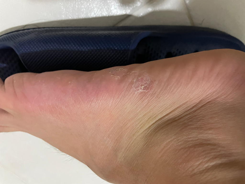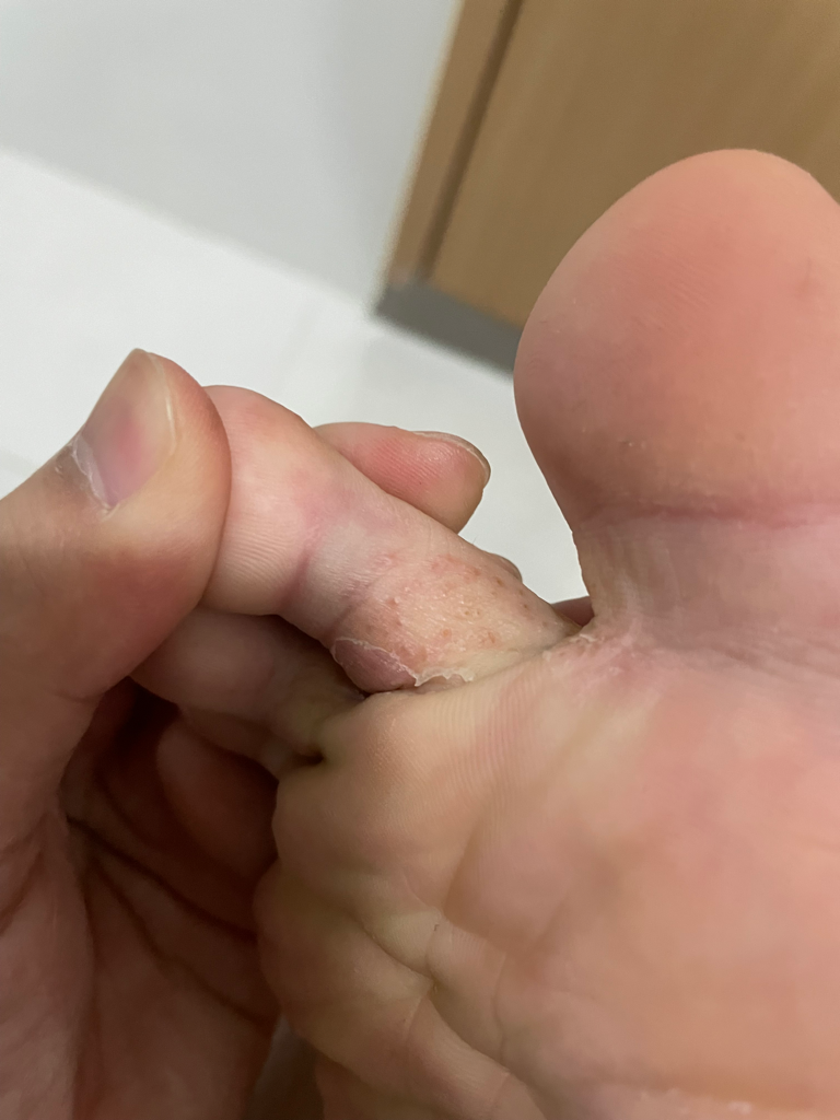 생긴 모양만 가지고 구체적으로 구분하기는 어렵겠습니다. 일단 무좀 연고를 구하셔서 발라보시고 효과가 없다면 습진 관련 스테로이드 연고를 발라보시는 것이 어떨까 싶습니다.