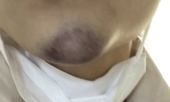 두달전에 넘어져서 밑 턱에 크게 타박상을 입고 멍이들엇습니다