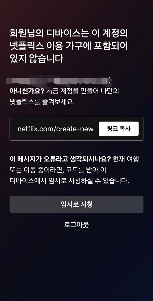 그리고 넷플릭스 앱에서 '이용 가구 업데이트'해보세요. 메인 TV의 넷플릭스 앱 설정에 들어가면 '넷플릭스 이용 가구' 메뉴가 있습니다.