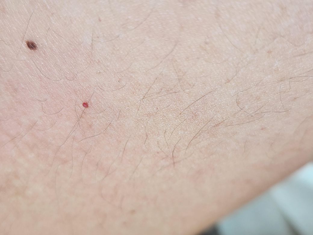 어제 팔을 보니 빨간점이 딱 있더라구여 가렵거나 아프진않은데 뭘까요??피딱지 그런거나 상처는 아닙니다?..........