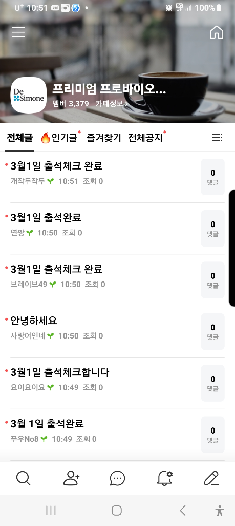 네이버 카페에서 제가 이벤트에 참가한것이라든가 게시글에 글 작성한거 확인 할려면 어떻게 해야 되는건가요? 우측 상단에 3선이 있다는데 저한테는 안보이고 좌즉 상단에 삼선이 보입니다.